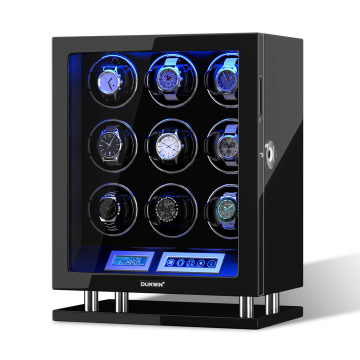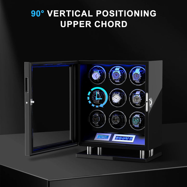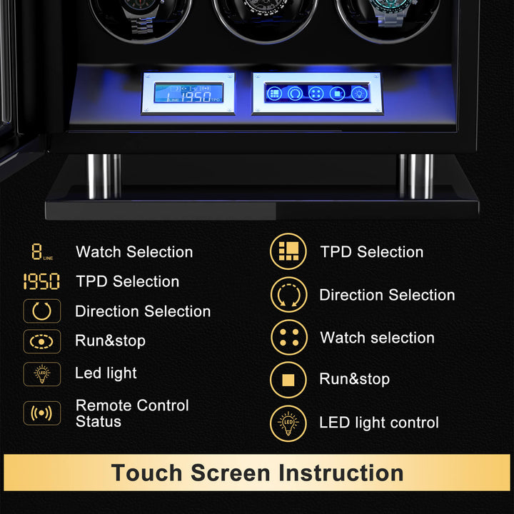 LCD und Fernbedienung: Zeigt alle Informationen zu den Uhrenbeweger-Modi an. Die Touchscreen-Option und die Fernbedienung erleichtern den Einrichtungsvorgang erheblich.