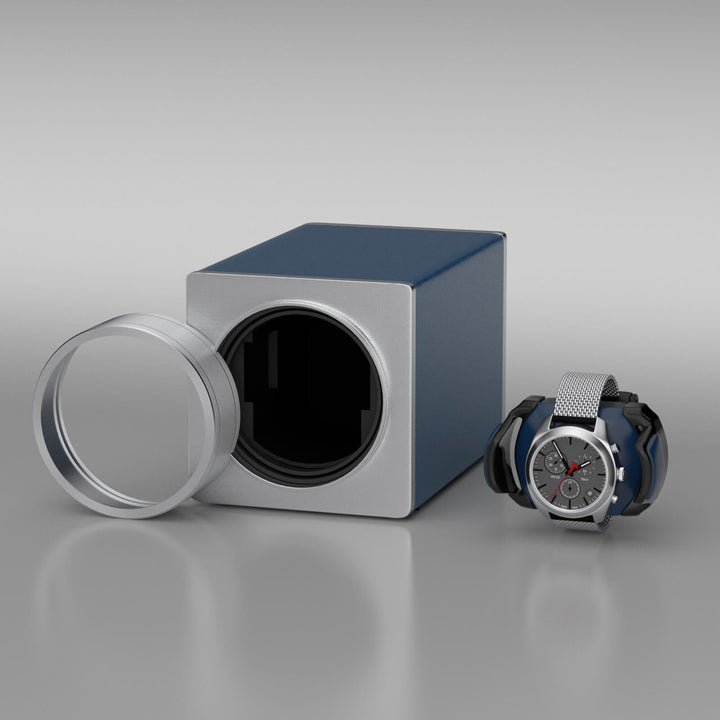 Einzelner Uhrenbeweger für Automatikuhren aus veganem Leder mit leisem Mabuchi-Motor - Indigoblau