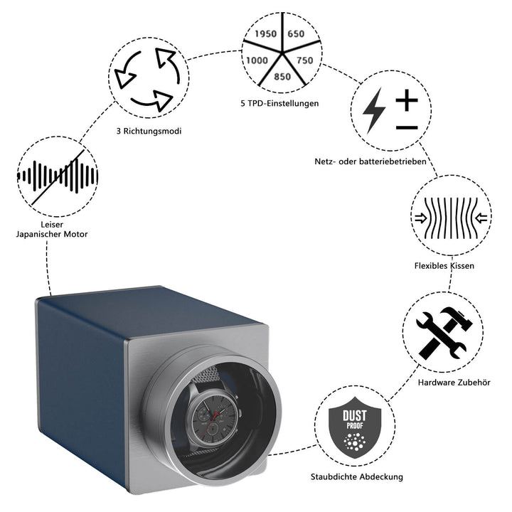 | Typ | Automatische Rotation, Uhrenaufbewahrung, LED-Licht |
