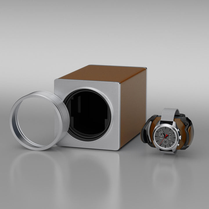 Einzelner Uhrenbeweger für Automatikuhren aus veganem Leder mit leisem Mabuchi-Motor - Tabakbraun