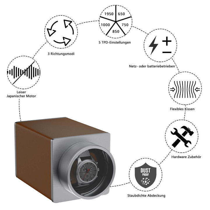 | Typ | Automatische Rotation, Uhrenaufbewahrung, LED-Licht |