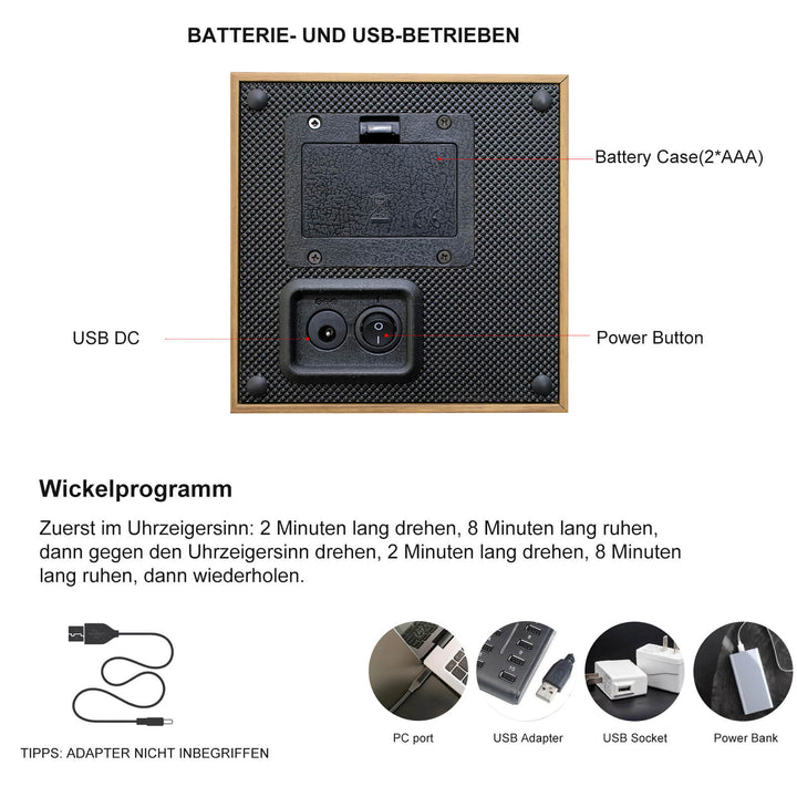 Doppelte Stromversorgung: Unser einzelner Uhrenbeweger kann über USB oder 2 * AA-Batterien (nicht im Lieferumfang enthalten) mit Strom versorgt werden. Sie können ihn während der Reise per Powerbank aufladen und können ihn bequem mitnehmen.