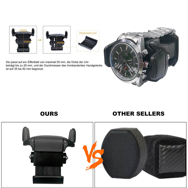 Uhrenmanschette: Dieses einzigartige Patentdesign passt am besten zu verschiedenen Uhrengrößen Armband/Handgelenk. Es passt auf ein Zifferblatt mit maximal 55 mm Durchmesser, der Armband-/Handgelenksdurchmesser ist auf 35–62 mm begrenzt.