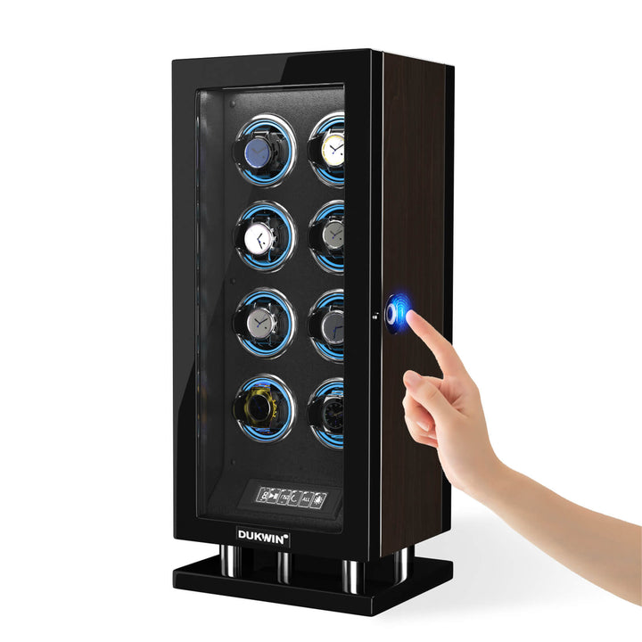Sonderedition - Uhrenbeweger für 8 Uhren mit verbessertem Fingerabdruck-Eintrag, RGB-Licht, Mabuchi-Motoren