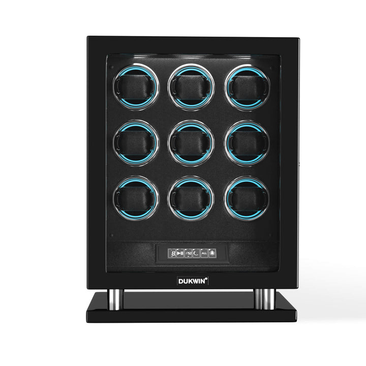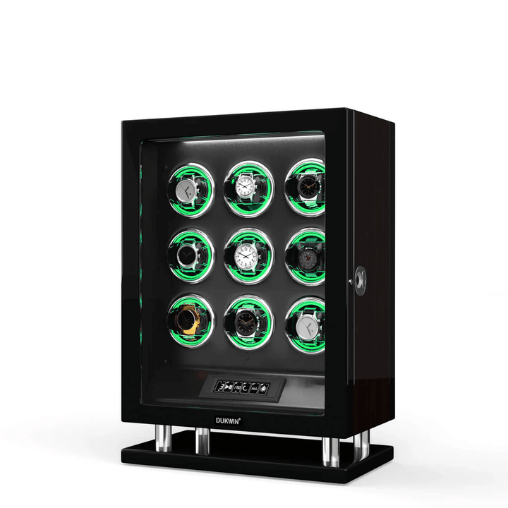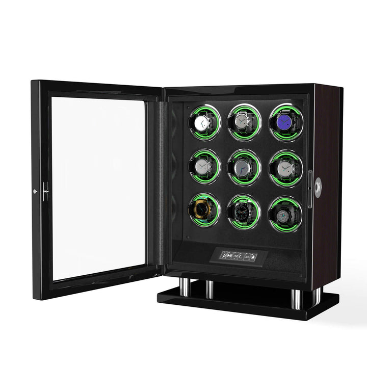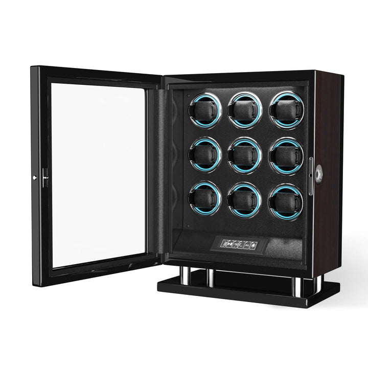 Sonderedition - Uhrenbeweger für 9 Uhren mit verbessertem Fingerabdruck-Eintrag, RGB-Licht, Mabuchi-Motoren